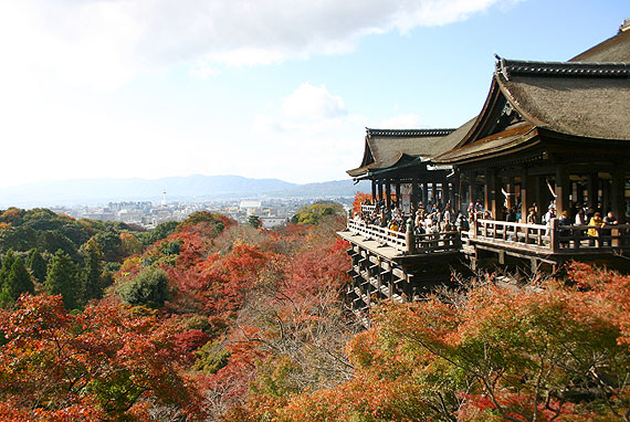 「清水の舞台から飛び降りる」このことわざで有名な清水寺。778年の創建。北法相宗の一寺一宗。本尊十一面千手観音は本堂厨子(国宝)内に安置。舞台からは京都市内が一望。西国三十三所観音霊場第十六番の札所でライトアップもされます。6:00~18:00 拝観料300円 ℡ 075-551-1234