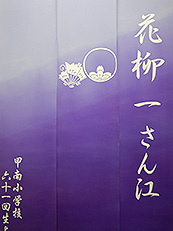 楽屋暖簾の制作実績紹介。俳優、女優、歌手、歌舞伎役者さん等、オーダーは京都の老舗「四季彩」にお任せください。
